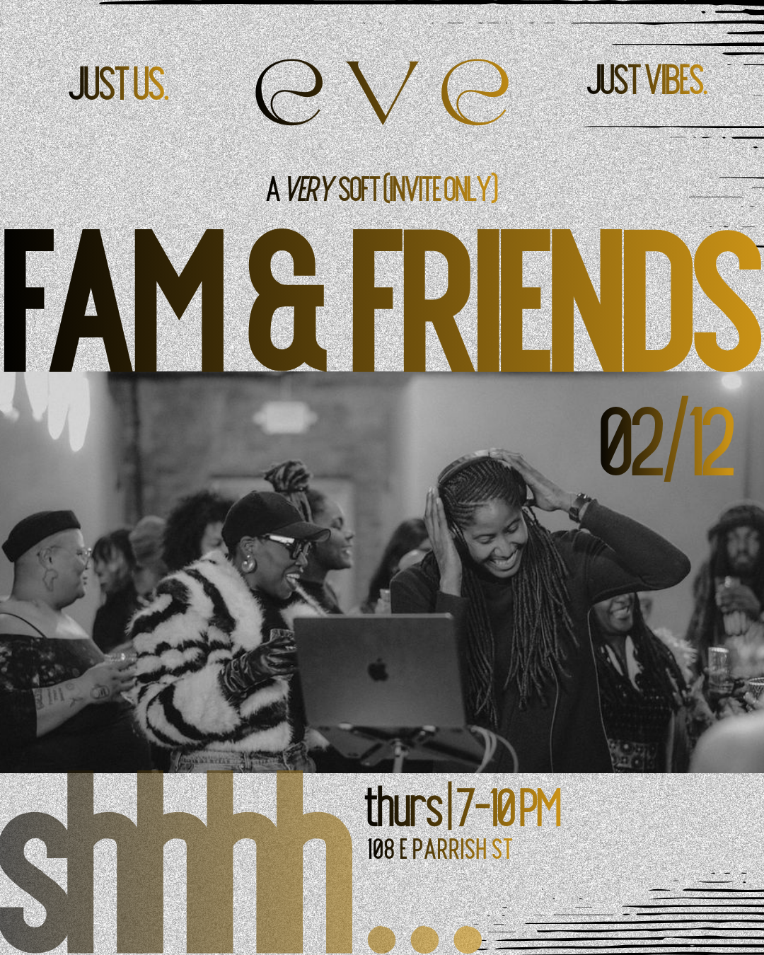 Join us to toast the very first night Eve opens for service. No (formal) filming, though Irene will be on site with camera. Some good music, great drinks, and time with our people. A night for family.